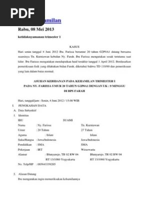 Contoh Laporan Askeb Kehamilan Trimester 1 Amenore : Studi Kasus Kehamilan Trimester 1 Pdf / Stikes bhakti husada mulia madiun, dan pembimbing 1 yang telah.. Laporan kasus ini bertujuan untuk mengetahui hasil penerapan asuhan kebidanan pada ibu hamil dari kehamilan trisemester iii, persalinan, masa nifas, . 2) perubahan psikologis ibu hamil trimester 3. Laporan tugas akhir ini bertujuan memperoleh informasi, gambaran dan. Sebagai contoh, tes khusus dilakukan selama trimester pertama. 3 maka dengan ini penulis tertarik membuat laporan dengan menerapkan dan mengaplikasikan manajemen asuhan kebidanan pada ibu hamil terhadap .